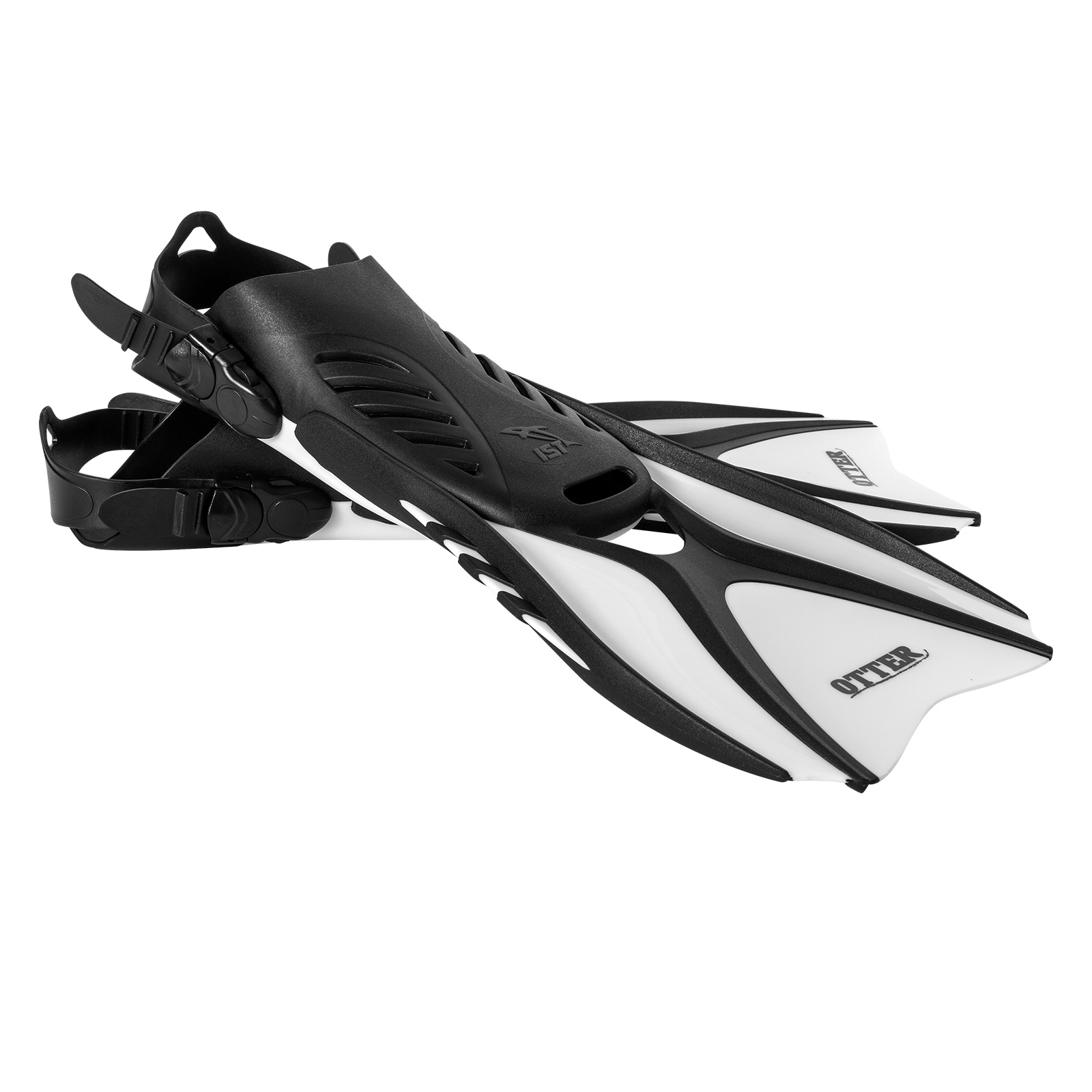 - Open heel general purpose trek fins made from lightweight, durable materials in a compact size