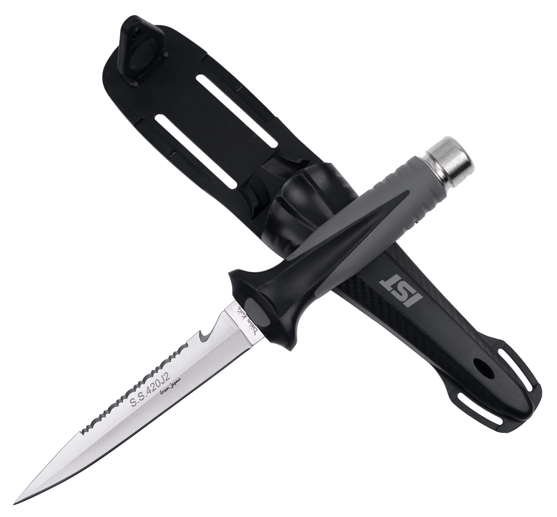 - Inherited from the classic spearfishing dive knife design, this knife features a sleek profile and solid construction that combines cutting performance with durability. Made of 4mm 420J2 stainless steel, it offers excellent corrosion resistance and toughness, maintaining both shine and sharpness even after prolonged exposure to saltwater.